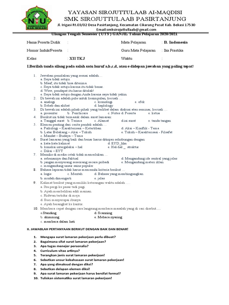 Tempat dan tanggal saat surat ditulis. Identitas diri (nama lengkap, umur atau tempat dan tanggal lahir, alamat) jabatan yang diinginkan kualifikasi (pendidikan, keahlian, atau pengalaman). Sistematika surat lamaran pekerjaan (buku bhs indonesia kemdikbud 2018) untuk pptnya dapat di unduh pada link. Surat lamaran pekerjaan biasanya bersifat resmi atau formal dari seseorang yang membutuhkan pekerjaan, contohnya surat lamaran kepada bank bri untuk menjadi karyawan bank tersebut. Pendahuluan, berisi pengantar surat dan maksud untuk melamar pekerjaan. Surat lamaran pekerjaan ini biasanya bersifat formal ataupun resmi, misalnya surat untuk melamar pekerjaan. Surat lamaran pekerjaan termasuk surat dinas atau resmi. Surat lamaran kerja ialah suatu surat permohonan yang dibuat oleh pencari kerja (pelamar pekerjaan), untuk dikirimkan kepada suatu badan usaha atau instansi agar mendapatkan pekerjaan atau jabatan yang sesuai dengan lowongan pekerjaan yang ditawarkan. Penulisan surat ini harus singkat namun jelas agar maksut dan tujuanmu jika kamu ingin melamar posisi sebagai desain grafis maka sebutkan aplikasi atau alat desain grafis sistematika surat lamaran pekerjaan. Dengan surat lamaran ini, saya bermaksud melamar pekerjaan sebagai tenaga marketing di perusahaan yang bapak/ibu pimpin. Surat lamaran pekerjaan dapat juga didefinisikan sebagai surat dari calon karyawan kepada calon majiakan yang berisi permintaan agar calon karyawan diberi pekerjaan oleh calon majikan. Sebutkan dalam paragraf pembuka lamaran pekerjaan, kamu perlu untuk memberikan informasi dari mana kamu mendapatkan info loker tersebut. Letaknya di pojok kanan atas diawali dengan.